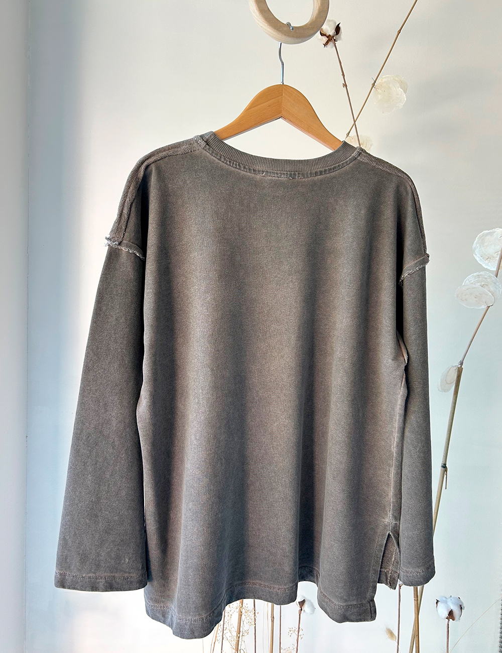 El precio original era: 64,95 €.32,48 €El precio actual es: 32,48 €. IVA incluidoSudadera chocolate lavada topos Caffé Latte.