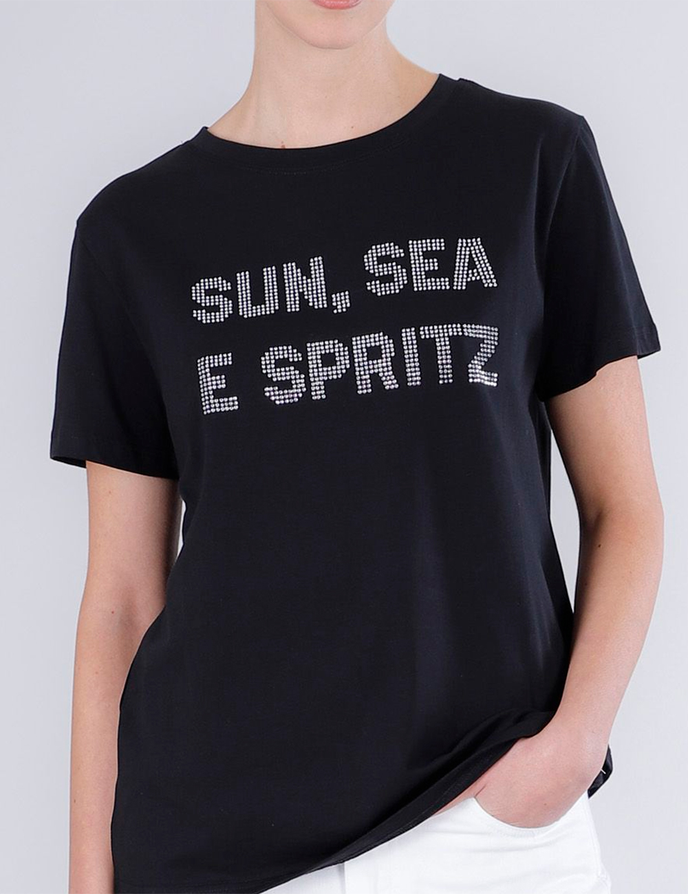 Su print delantero de cerezas con detalle vichy y strass al tono aporta un aire fresco, femenino y muy actual. Un top casual con personalidad, ideal para combinar con denim y crear looks desenfadados con el sello Gus Gus.